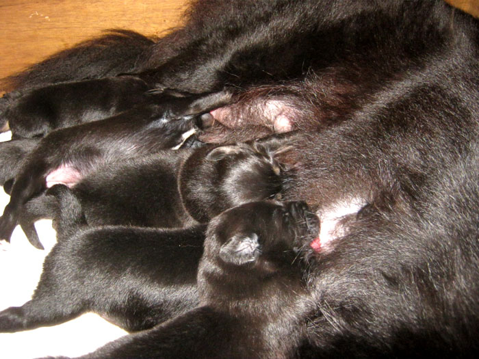 Hier nun unsere Do Khyi Welpen aus dem N-Wurf vom 26.10.2013 - Bitte nach unten scrollen!26. Oktober 2013Hier der stolze Vater, unser Riesenbaby Jamgön, genannt Kunga, Enkel vom int. Vet.-Champ. Marco Polos King of Tibet Vayu, Sohn unserer mehrfachen Siegerin und BOB (Rassebeste) Marco Polos King of Tibet Arista Und hier nun das erste Foto der kleinen Do Khyi mit ihrer schwarzen, löwenmähnigen Mami, Urenkelin vom Multi Champion Buddha van Desaäl... Nun ist die erste Woche um, und die kleinen haben sich prächtig entwickelt und dazu einen Riesenappetit... Eine kleine rabenschwarze Schönheit!