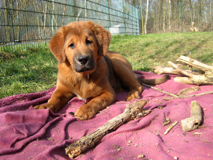 Das ist Peppis Schwester Tashi Semkhyi alias "Muffy". Muffy ist ein cooles Mädel und wird später eine große kräftig goldfarbene Hündin werden...