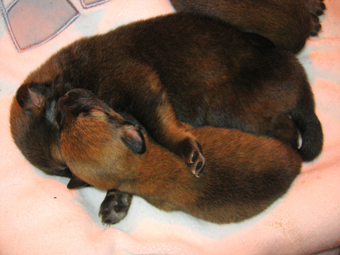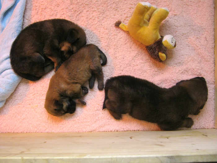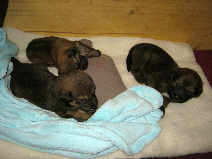 Hier die kleinen Do Khyi 2 Wochen nach der Geburt...